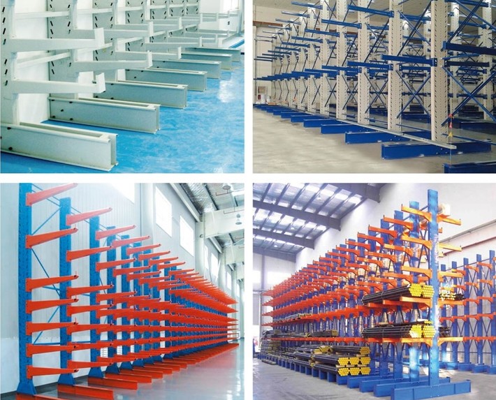 懸臂貨架: 適用于長型、板材或環(huán)形物料的儲存。前伸的懸臂具有結(jié)構(gòu)穩(wěn)定,載重能力好,管理方便、視野寬闊。根據(jù)載重不同,可分為輕型、中型、重型;根據(jù)儲存面可分單面、雙面懸臂。