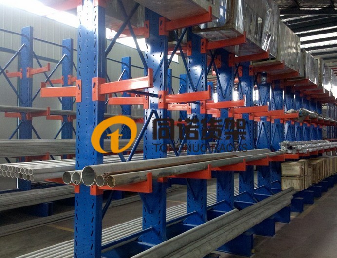 懸臂貨架: 適用于長型、板材或環(huán)形物料的儲存。前伸的懸臂具有結(jié)構(gòu)穩(wěn)定,載重能力好,管理方便、視野寬闊。根據(jù)載重不同,可分為輕型、中型、重型;根據(jù)儲存面可分單面、雙面懸臂。