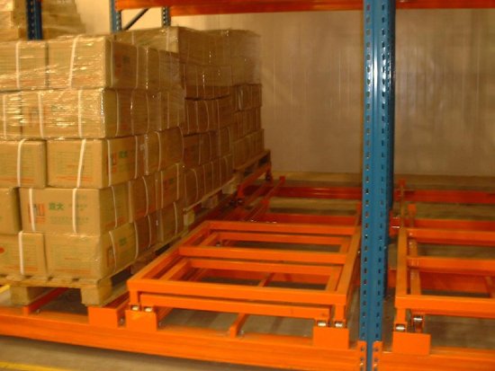 壓入式貨架非常適用于冷庫或存儲區(qū)域有限但急需增加儲位面積的場合使用,在國內(nèi)已有很多的應(yīng)用。