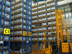 窄巷道托盤式貨架又稱VNA貨架,專指常規(guī)橫梁式貨架系統(tǒng)選用的叉車為三向叉車時(shí)的系統(tǒng),其與常規(guī)托盤式貨架系統(tǒng)相比,區(qū)別在于窄巷道托盤式貨架系統(tǒng)的巷道寬度要比常規(guī)托盤式貨架系統(tǒng)小的多,一般為1600-2000mm左右,空間利用率又提高了20%左右,另外在通道兩側(cè)必須設(shè)置導(dǎo)向護(hù)軌,以為三向叉車行駛導(dǎo)向之用。